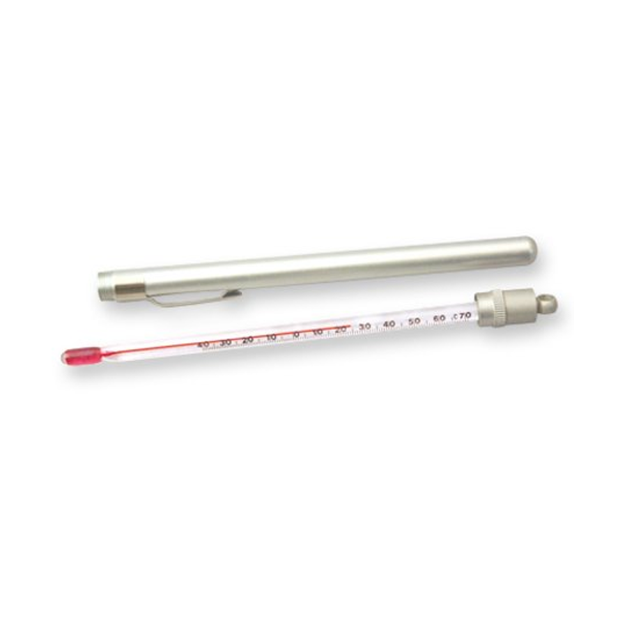 - El termómetro de bolsillo TH26 está lleno de líquido rojo no tóxico e incluye una funda protectora de aluminio.